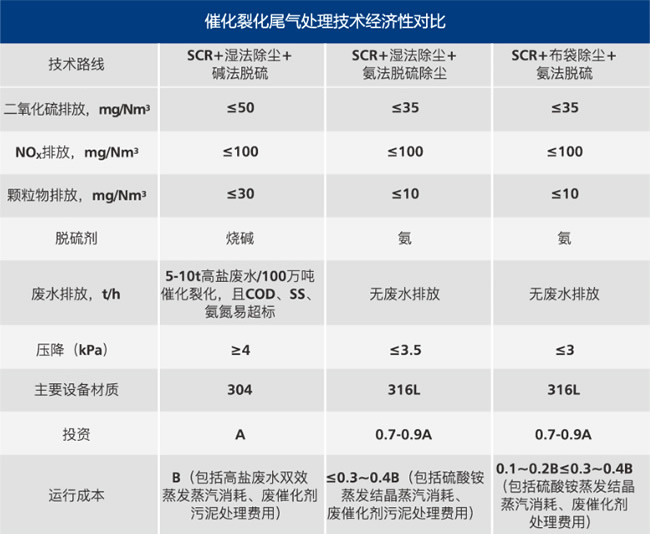 江南環保催化裂化尾氣一體化處理技術與常規堿洗相比具有明顯的優勢,在達到相同脫硫(≤50mg/Nm3,可達到35 mg/Nm3)、脫硝(≤100mg/Nm3)、除塵(≤10mg/Nm3)指標的情況下,投資節省10~30%,運營費用節約50%以上,無高鹽廢水排放,無二次處理費用,副產硫酸銨。